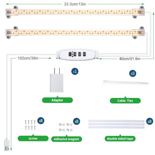 This set of 13-inch LED grow light strips is designed for indoor plant enthusiasts who want to provide their seedlings and succulents with optimal light conditions. With a full spectrum output, these lights simulate natural sunlight, promoting robust growth for a variety of plants year-round.