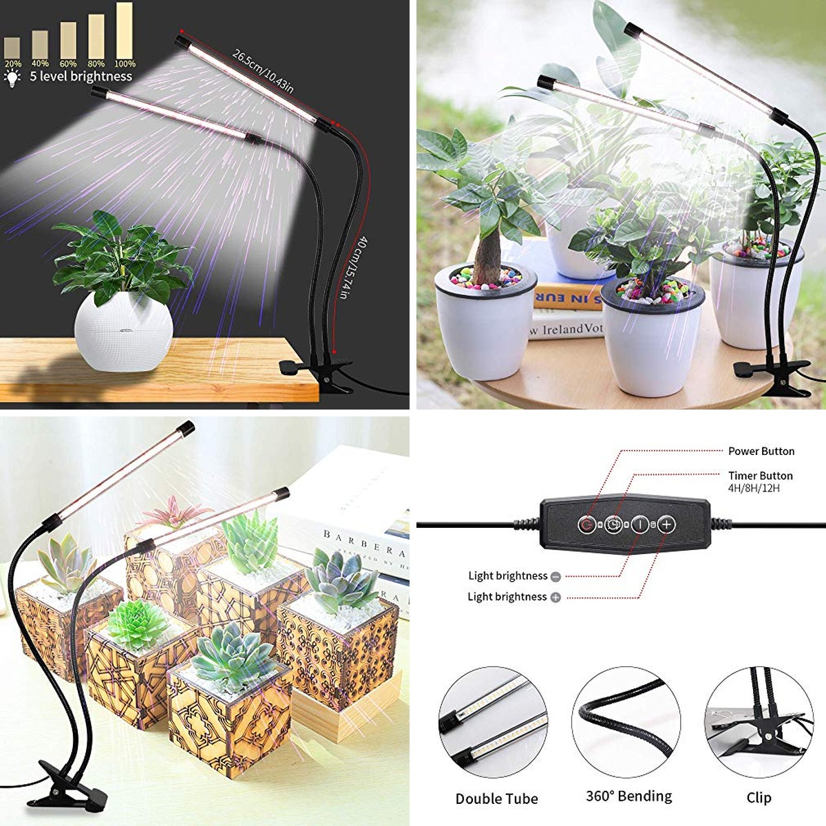 Grow Lights for Indoor Plants, Garpsen Grow Light with Red Blue Full Spectrum, 2 Heads Clip 40 LEDs Plant Light for Indoor Plants, 3 Switch Modes & Auto ON/Off, 6 12 16H Timer, 5 Dimmable Levels