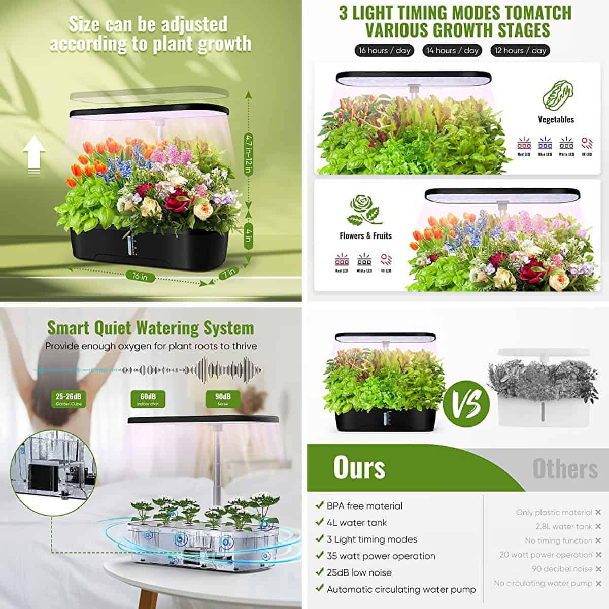 - Look for convenient features like automatic timers, water level indicators, and quiet water pumps to simplify plant care and maintenance.