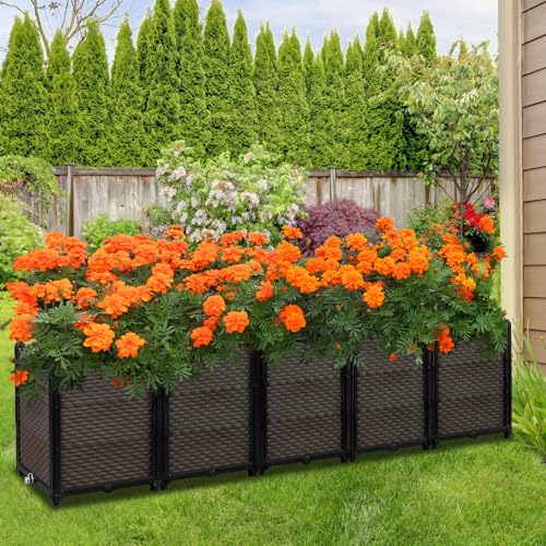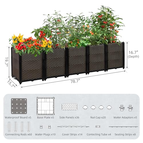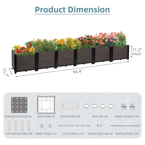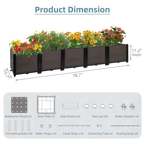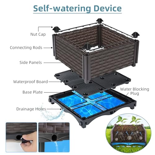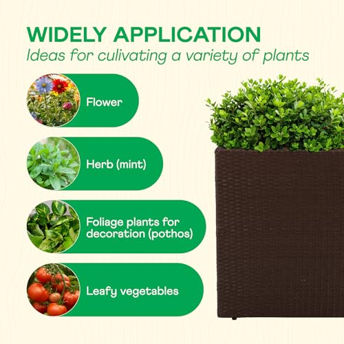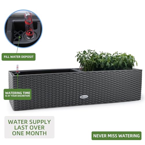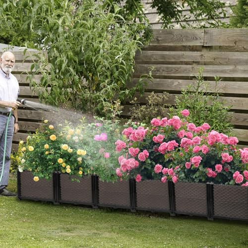 Product | Large Raised Planter Box Outdoor Self Watering 78.7"x15.7"x14.2", Deep Raised Garden Bed – Elevated Garden Box with Drainage Plug, Rectangular Garden Planter Perfect for Patio Balcony Deck Ciao Stilista | Keter Urban Bloomer 12.7 Gallon Raised Garden Bed and Outdoor Herb Garden Planter with Self Watering Gauge and Drainage Plug, Dark Grey Keter | Dexceder 31.5 Inch Rattan Self Watering Planter Indoor Outdoor, Thickened Large Rail Flower Plant Pot Window Box with Water Level Indicators (Deep Gray) Dexceder |