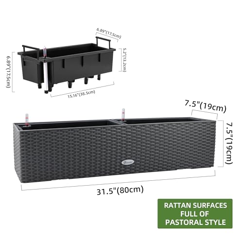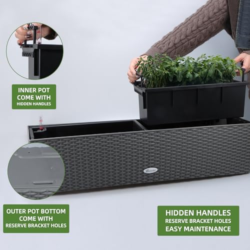 This planter set offers the advantage of self-watering, ensuring your plants receive consistent moisture with minimal effort. The adjustable bracket provides versatile mounting options for various railing styles.