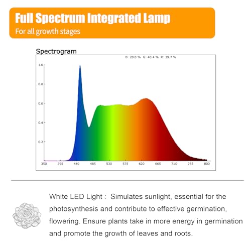 - Enjoy optimized plant growth with a spectrum tailored to rooting, sprouting, blooming, and fruiting stages.