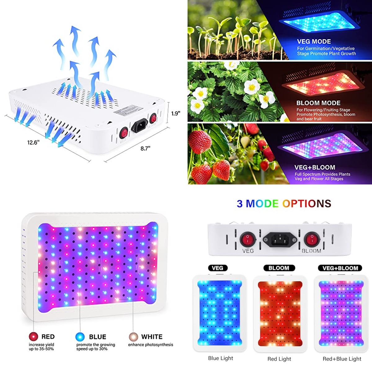 - Enjoy optimized plant growth with a spectrum tailored to rooting, sprouting, blooming, and fruiting stages.