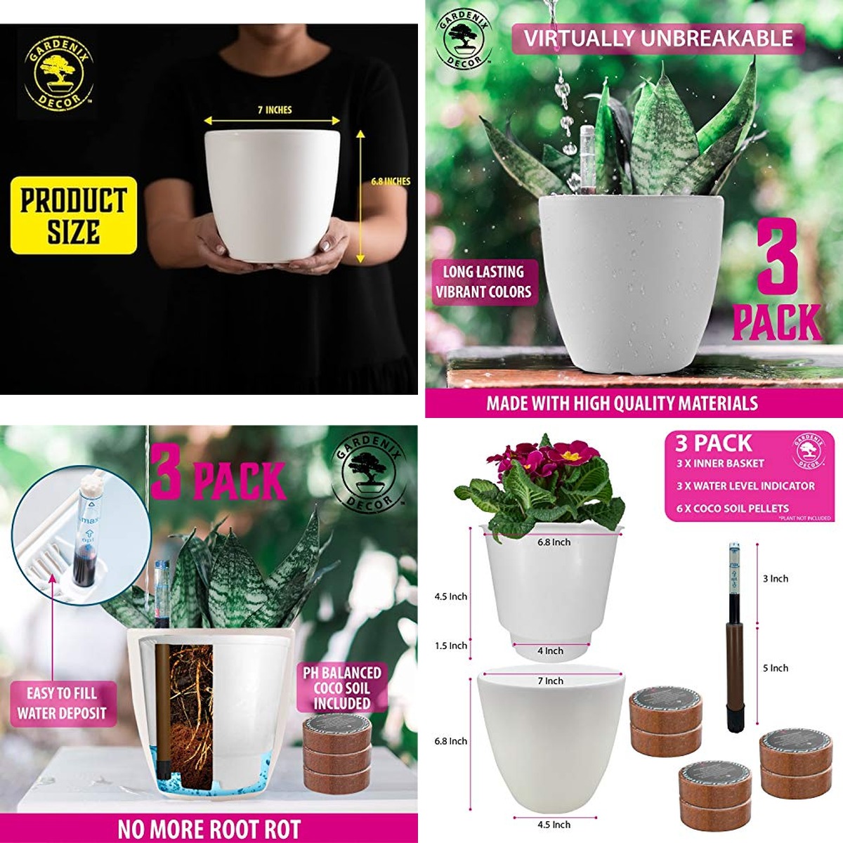 Product | Melphoe Self Watering Pots for Indoor Plants Planter, 4.7 Inch 2 Pack Planters Self Watering Plant Pots for Flower, Houseplants, Succulent, African Violets and Cactus with Drainage Melphoe | SE SUN-E 5Pack Self Watering Plant Pots for Lazy People, 7/6.5/6/5.5/5 Inch,White Plastic Self Watering Planter for All Houseplants,Succulent, African Violets,Snake Plants, Flowers and Cactus SE SUN-E | IWNTWY Self Watering Pots Set, 3 Pack 2.7 Inch Pots for Indoor Plants, Clear Nursery Planter with Deep Reservoir for Succulents, Seedlings, Small Plants IWNTWY 1. Self Watering Pots Bloom Bright![]() ![]() ![]() ![]() Bright blooms will flourish along your garden fence with minimal fuss. These self-watering planters offer a charming farmhouse warmth, ensuring your plants thrive even during busy weeks. The intelligent design means less worry about watering, freeing you to simply enjoy the visual feast of vibrant flowers against the rustic backdrop of your outdoor space. Imagine a cheerful display of African violets or succulents gracing your entryway, their colors popping and adding a lively spirit. ProsThese planters are designed for effortless plant care, ensuring your greenery stays hydrated and healthy with their self-watering feature. They are suitable for a variety of plants, from delicate flowers to sturdy succulents, and offer a practical solution for busy gardeners or those prone to forgetting watering duties. ConsThe smaller size might limit the growth of larger, more established plants, and placement should be considered to ensure the self-watering mechanism can function effectively without becoming waterlogged. Best for: Small-scale vibrant displays and low-maintenance plant enthusiasm. View this product’s details and availability on Amazon. 2. Self-Watering Pots for Happy Plants![]() ![]() ![]() ![]() Cheerful bursts of color can brighten any garden path with ease. These clever planters bring a touch of farmhouse warmth to your outdoor living space, promising flourishing blooms even for the most forgetful hands. Their intelligent design ensures your plants receive consistent hydration, liberating you to simply bask in the visual delight of vibrant petals against your established garden border. Think of a welcoming display of cascading petunias or sturdy geraniums gracing your patio, their lively hues radiating a sense of carefree joy. ProsThese planters are expertly designed for effortless plant care, ensuring your greenery stays consistently hydrated and thriving thanks to their self-watering feature. They are versatile enough to accommodate a wide range of plants, from delicate annuals to resilient perennials, offering a practical solution for those seeking healthy, vibrant plant displays with minimal oversight. ConsThe inherent size of these pots may present limitations for plants requiring substantial root development, and careful consideration of their placement is advised to ensure the self-watering mechanism functions optimally without risk of water saturation. Best for: Creating vibrant, low-maintenance floral accents along pathways and patio edges. View this product’s details and availability on Amazon. 3. Self Watering Pots for Plants![]() ![]() ![]() ![]() Tiny treasures of green will grace your windowsill with effortless charm. This trio of clear nursery planters brings a touch of modern simplicity to your indoor oasis, promising thriving seedlings and succulents with their clever self-watering design. The intelligent reservoir ensures consistent moisture, liberating you from daily watering duties and allowing you to simply admire the delicate unfurling of new leaves. Group them together on a clean concrete patio or a weathered wood shelf, their transparent forms highlighting the vibrant earthy tones of the soil and plant life within. ProsThese planters are designed for effortless plant care, ensuring your greenery stays hydrated and healthy with their self-watering feature. They are suitable for a variety of small plants, including delicate seedlings and water-loving succulents, offering a practical solution for busy gardeners or those new to plant care. ConsThe smaller size may limit the long-term growth of larger, more established plants, and they are best suited for indoor or sheltered outdoor environments where the self-watering mechanism can function effectively without excessive environmental exposure. Best for: Starting seedlings, nurturing small succulents, and creating mini green displays indoors. View this product’s details and availability on Amazon. 4. Self-Watering Pots for Happy Plants![]() ![]() ![]() ![]() Delicate greenery will flourish along your garden path with a touch of modern simplicity. Group these planters together amidst a scattering of smooth river stones to highlight their clean lines and create a serene focal point. Their intelligent reservoir ensures consistent moisture, liberating you from daily watering duties and allowing you to simply admire the unfurling of new leaves, fostering a sense of peaceful contemplation. This piece brings an understated elegance to your outdoor space, perfect for nurturing a collection of small succulents or cheerful African violets. The clear design draws the eye to the living elements within, offering a subtle yet captivating visual treat that soothes the senses. ProsThese planters are designed for effortless plant care, ensuring your greenery stays hydrated and healthy with their self-watering feature. They are suitable for a variety of small plants, including delicate seedlings and water-loving succulents, offering a practical solution for busy gardeners or those new to plant care. ConsThe smaller size may limit the long-term growth of larger, more established plants, and they are best suited for indoor or sheltered outdoor environments where the self-watering mechanism can function effectively without excessive environmental exposure. Best for: Starting seedlings, nurturing small succulents, and 