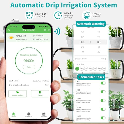- Smart Drip System Waters Plants – This system offers automated watering for up to twenty potted plants, ideal for extensive container gardens.