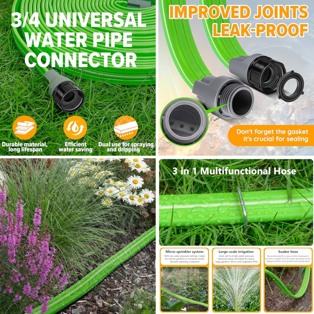 | Key Features | • Double layer design, leak proof • Saves 80% water, even water discharge | • Double layer design, leakproof • Linkable for DIY irrigation system • Made of recycled vinyl | • Dual-layer leak-free design • Linkable for DIY irrigation system • Saves 88% water |
