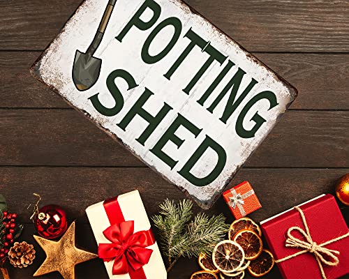 HYBLOM Vintage Potting Shed Sign for Classic Garden Decor, Greenhouse, She Shed Accessories - Metal Tin Sign 12x8 Inches