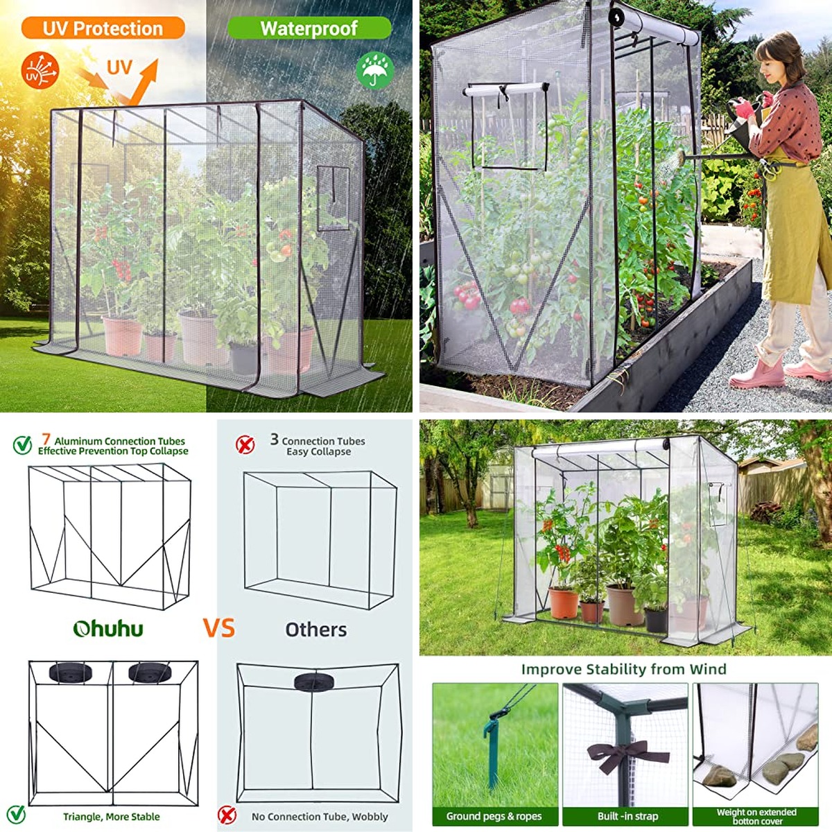 Ohuhu Tomato Greenhouse for Outdoors: Portable Lean to Green House Heavy Duty with Roll-Up Zippered Door, Tall Plastic Greenhouses for Outside Plants Growing…