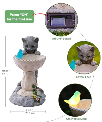 - Solar Cat Garden Statue Brightens – Provides a warm, ambient glow with integrated solar lights, enhancing visual appeal after sunset.